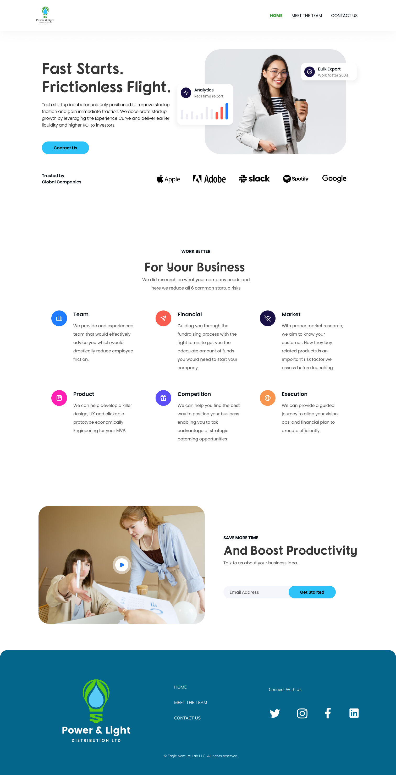 Uninterrupted grid quality electricity. A 3 page website to allow investors and clients to find out more about the company before distribution.